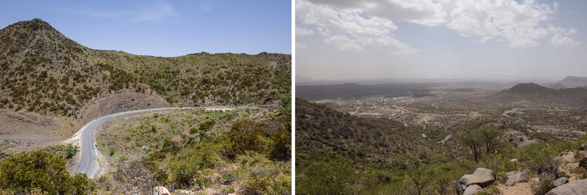 For this leg of the journey, to begin with, the roads are asphalted, with a change to a bumpy mix of bitumen and dirt roads and then to approximately 268 kilometres of a newly-constructed road between Afmadow and Ceerigaabo. It involves driving all day and into the night, through some stark and striking scenery – but also involves stopping at camps for internally displaced people to hear from them about the challenges they face.